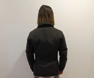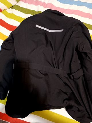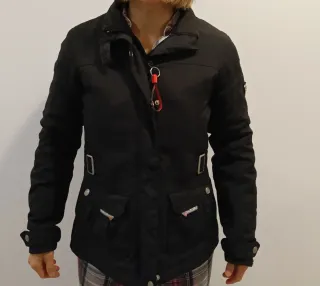 Chaqueta de moto diseñada para mujer talla S - Color negro. - Diseño con cuello. - Cinturón ajustable en la cintura. - no tiene protecciones pero si los huecos para ponerlas. - doble forro extraíble con cremallera ( verano/ invierno)