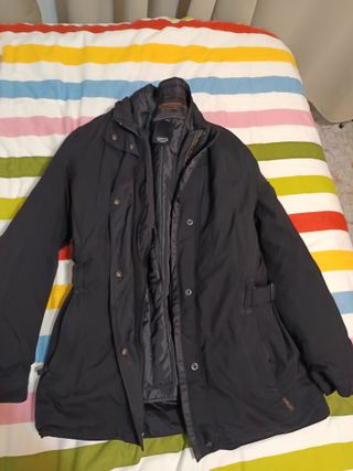 chaqueta imitación cuero viejo de polipiel talla XL marca springfield con capucha gris algodón desmontable puesta en 2 ocasiones INTERCAMBIO CHAQUETA MOTO O DEPORTE