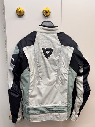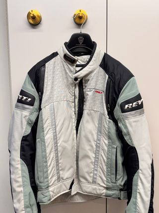 Chaqueta de cordura Revit Pro, ideal para motociclismo. Diseño en color gris, negro y verde. Tiene forro desmontable para el verano. - Tejido de cordura resistente. - Detalles reflectantes. - Cierre frontal con cremallera y solapa. - Cuello alto con cierre de botón.