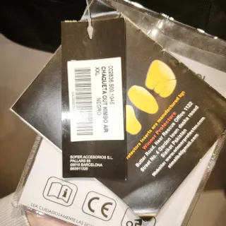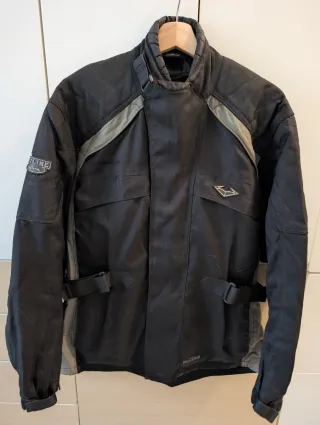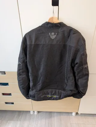 Talla 2XL. Con protecciones en hombros codos y espalda. Forro interior desmontable que se puede quitar en verano. El exterior es impermeable. Tiene posibilidad de ajustarse la cintura y los puños mediante correas de velcror. Las mangas presentan una ligera curvatura para facilitar la conducción. Muy cuidada. Y con muy poco uso.