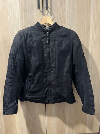 Chaqueta de moto en buenas condiciones. - Diseño en malla transpirable. - Cierre de cremallera frontal. - Bolsillos con cremallera. - Ajustes en puños y cintura.