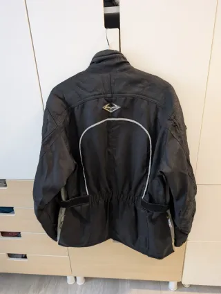 Chaqueta de moto en talla XXL, ideal para rutas. - Diseño en color negro y gris. - Detalles reflectantes para mayor visibilidad. - Cremalleras y ajustes en mangas y cintura, protecciones en hombros codos y espalda, chaqueta de 4 estaciones con 4 capas, se estrecha de cintura y queda entallada, yo mido 1'73 cm y 83kg, solo un año de uso
