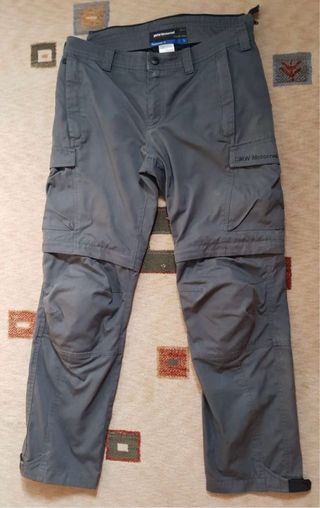 Pantalón BMW Motorrad Summer 3, talla L en perfecto estado, convertible en pantalón corto y todas sus protecciones (cadera y rodillas), bolsillos laterales, cremalleras y velcros en perfecto estado. Cremallera unión a chaqueta. Color gris/antracita. Se hace envío y negociable