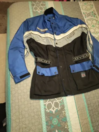 Chaqueta de moto SCOYCO en colores azul, negro y gris, ideal para cross o enduro. - Bolsillos frontales con solapa azul. - Cinturón ajustable a la cintura. Incluye forro interior para más abrigo, el interior nunca se ha usado porque la chaqueta ya abriga bastante. Ningun roto ni desgarro solo algún pequeño roce. Talla M