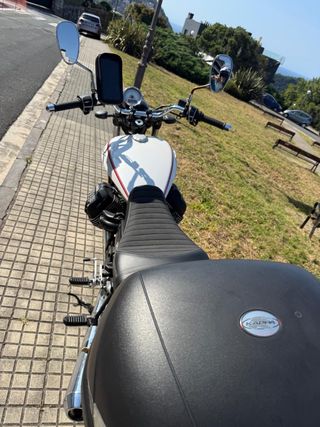 Moto Guzzi V9 Roamer matriculada en 2018, en muy buen estado y con muy pocos kilómetros. ✔️ 10.200 km ✔️ Único propietario ✔️ ITV pasada ✔️ Siempre en garaje ✔️ Baúl para dos cascos o uno grande y accesorios incluidos (pantalones y chaqueta de lluvia, protector para el movil) negociable el casco. Motor V-Twin 853 cc, muy cómoda de conducir, estable y con estética clásica. Mantenimiento al día. Moto lista para usar, sin hacerle nada. Para más información por privado. Precio negociable. 📍 Donostia / San Sebastián 📩 Se puede ver sin compromiso