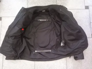 Chaqueta de cordura impermeable tricapa (chaqueta, forro térmico y forro de agua). Utilizada en 2 ocasiones, por lo que está completamente nueva. La capa impermeable se puede utilizar tanto por dentro de la chaqueta como por fuera (evitando que se moje la chaqueta y coja peso). Ventilaciones muy amplias para el verano, tanto en el pecho como en la espalda. Es ideal como chaqueta de cuatro estaciones. Incluye protecciones Nivel 2 en codos y hombros. No incluye espaldera. Vendo porque me queda excesivamente grande. - Color negro. - Cierre frontal con cremallera. - Múltiples bolsillos. - Detalles reflectantes.