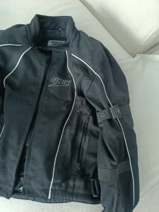 Usada en buen estado. Con protecciones en espalda, codos y hombros y forro interior desmontable. Talla XL