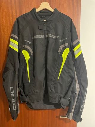 Chaqueta de moto Bela en color negro con detalles en flúor y gris. - Diseño deportivo. - Cierre frontal. - Mangas largas. - Logos de la marca visibles. - con protección de hombros y codos - solamente usada pocas veces - la vendo por que he rebajado mucho y me queda grande - esta casi nueva - me falta el forro de adentro que se lo he quitado y no lo encuentro Marca talla 6Xl pero es para un XL , 2 XL