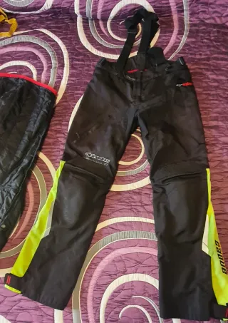 Pantalón de moto Alpinestars Andes, pantalon waterproff. ( unisex ) - Color negro con detalles reflectantes en amarillo neón. - Tirantes ajustables. Permiten llevar el pantalon desde talla 38 a 48 de tejano normal. Cremallera conexión chaqueta Ykk fina. - Cremalleras ventilación en los muslos. Es pantalon touring , es amplio en los bajos y de corte recto. Medida en cintura 94 cm. Largo desde entrepierna 80 cm. Largo total 108 cm. Todas las cremalleras y velcros en perfecto estado. Logotipo de la pierna gastado de lavarlo. Sin caídas ni arrastrones. Forro térmico desmontable. Protecciones de rodilla Válido para 4 estaciones.