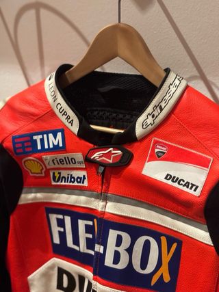 Se vende chaqueta Alpinestars del equipo oficial Ducati 2017 en perfecto estado, muy pocos usos. ORIGINAL, no es una replica como las que corren por allí. TALLA 52 Chaqueta muy difícil de ver ya que perteneció al equipo oficial y raramente fué comercializada. Con todos los patrocinadores perteneciente a esa temporada.