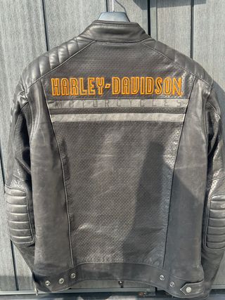 Chaqueta de cuero Harley-Davidson con forro polar extraíble incluidas las mangas. Armadura corporal extraíble en codos y hombros. Cuatro bolsillos delanteros y tres interiores. Color negro. SIN USO.
