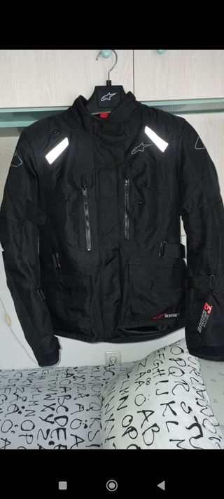 Chaqueta de moto Alpinestars en color negro, modelo Drystar. Está nueva, me la he puesto 2 veces - Diseño Tech-Touring. - Cremalleras de ventilación directa. - Detalles reflectantes blancos. - Cinturones ajustables en cintura y mangas. - Protecciones en codos, hombros y espalda - Forro interior desmontable Es talla S, pero me vale y yo normalmente tengo la talla M.