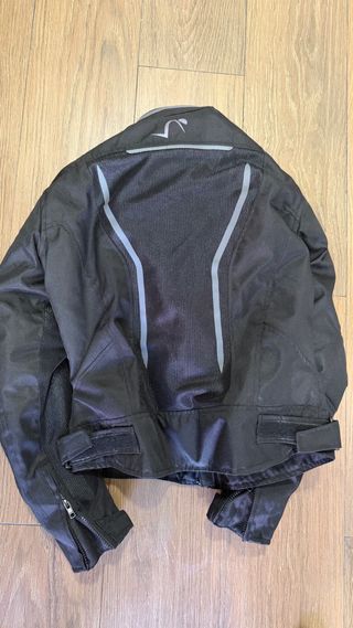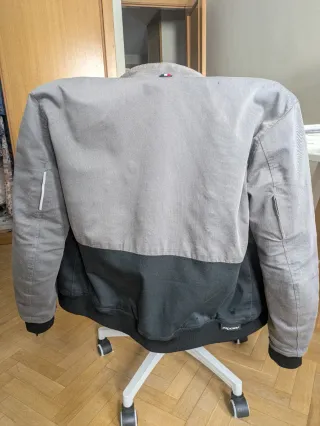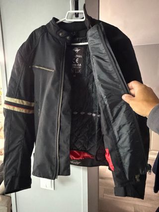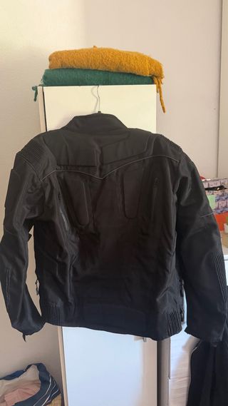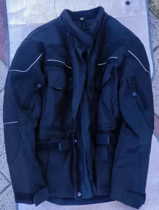Chaqueta de moto marca Ixon. - Forro interior desmontable - Protecciones en hombros y codos nivel 2 - Talla XL - Tiras reflectantes La chaqueta está perfecta para su uso diario (la he estado usando hasta ahora). Tiene un pequeño enganchón en la parte de abajo de la espalda (ver foto), una mancha en la espalda que no he conseguido quitar (ver foto) y una de las tiras elásticas de la manga suelta, no sé para qué se usa (ver última foto) Cualquier duda preguntad sin compromiso.