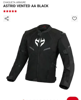 Nueva usada una vez para examen de moto Chaqueta de moto Armure Astrid Vented AA Black en talla S. Diseño moderno y funcional. - Color negro. - Material resistente. - Cierre de cremallera.