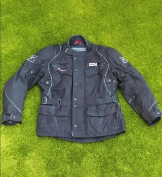 Chaqueta de moto IXS en color negro y talla L. Se encuentra en excelente estado, con muy poco uso. - Diseño moderno y funcional. - Cierre frontal con cremallera y solapa. - Múltiples bolsillos exteriores e interiores. - Cinturón ajustable para un mejor ajuste.