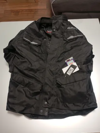Chaqueta de moto Spidi de cuatro estaciones, ideal para cualquier clima. Diseño moderno y funcional. - Material textil resistente. - Paneles de ventilación. - Ajustes en cintura y puños. - Protecciones en hombros y codos integradas. - forro interior desmontable. - Impermeable. - Talla XL.