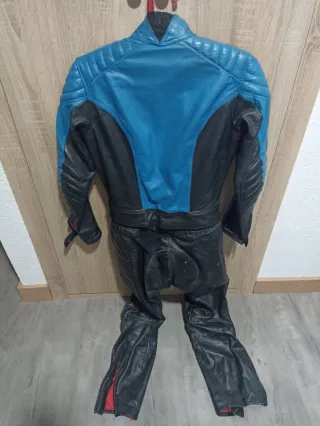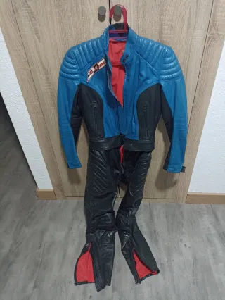 Mono de cuero para moto en talla 44. Ideal para pilotos que buscan protección y estilo. - Mono de dos piezas (chaqueta y pantalón). - Material: Cuero. - Color: Azul y negro con detalles rojos. Talla 44,ideal mujer o niño,pantalón desmontable con cremallera