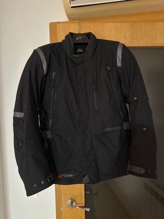 Chaqueta de moto Alpinestars con tecnología Drystar - Color negro. Talla L. - Ideal para Invierno. -Protecciones de Kevlar - Diseño con múltiples bolsillos y cremalleras. Doble chaqueta para el frío. - Detalles reflectantes para mayor visibilidad. -CASI NUEVA