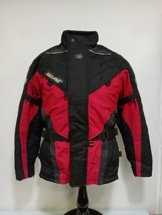 Chaqueta de moto MILINE en color negro y rojo. Diseño deportivo y funcional. - Paneles de ventilación. - Cierre de cremallera. - Logos de la marca visibles. - Talla M. Perfecto estado como nueva, se puede ver y probar antes de comprar somos tienda.