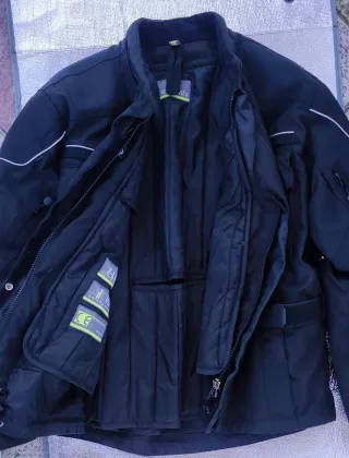 Chaqueta de moto Revit Outback 3 Talla L. chaqueta de 3 capas, con protecciónes en codos y hombros. Múltiples bolsillos interiores y exteriores, cremalleras y aperturas para ventilación en mangas, pecho y espalda. Puedes llevar una capa, dos o tres...una de ellas es impermeable, la chaqueta es ideal para temperaturas muy frías o para tiempo más caluroso, pudiendo meter las capas que no uses en el bolsillo trasero y abrir las múltiples cremalleras para ventilación que tiene .