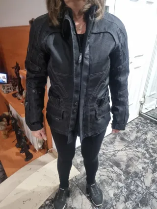 Chaqueta de cuero mujer, usada una sola vez, con forro de invierno y protecciones removibles. Talla L.