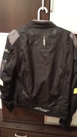 Chaqueta de moto para verano, en excelente estado. - Diseño en malla transpirable. - Paneles de alta visibilidad en color amarillo. - Cierre frontal con cremallera. - Ajustes en cintura y puños.