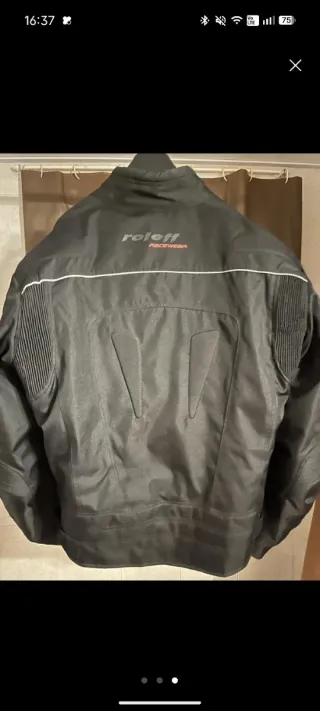 Chaqueta de moto de color negro, ideal para protegerte en tus rutas. Roleff racewear - Diseño con múltiples bolsillos. - Cierre frontal con cremallera. - Detalles reflectantes en mangas y espalda. - Puños ajustables. -Protecciones coderas y hombro. Talla 3XL pero realmente es algo más pequeña