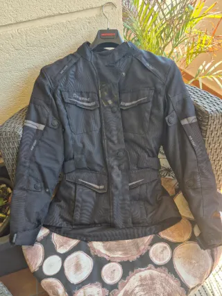 Vendo chaqueta de moto de mujer de la marca RAINERS, está como nueva ya que se ha utilizado pocas veces, es una chaqueta 4 seasons ya que tiene su forro para quitar y poner. Talla pequeño. - Material exterior resistente. - Forro interior acolchado. - Cierre de cremallera. - Detalles reflectantes.