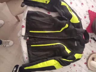 Chaqueta de moto RTECH con detalles llamativos. - Diseño deportivo. - Combinación de colores negro y amarillo. - Ideal para carretera. -Con proteccion y interior para quitar para el verano. - rosa talla 5xl mujer y la amarilla talla S. El precio es por las dos chaquetas.