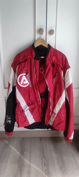 Chaqueta de moto Spyke con diseño en negro, rojo y gris. La he usado solo 3 veces Tallal xl - Mangas largas. - Cierre de cremallera. - Bolsillo frontal.