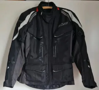 Se venden dos chaquetas de cordura en talla XL y M. Perfectas para motoristas. - Chaqueta negra y roja con protecciones. - Cierre de cremallera frontal. - Múltiples bolsillos exteriores e interiores. - Ajustes en cintura y mangas.