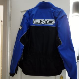 Chaqueta de moto AXO con un diseño moderno y detalles llamativos. - Etiqueta de talla S. - Cierre de cremallera. - Interior acolchado.