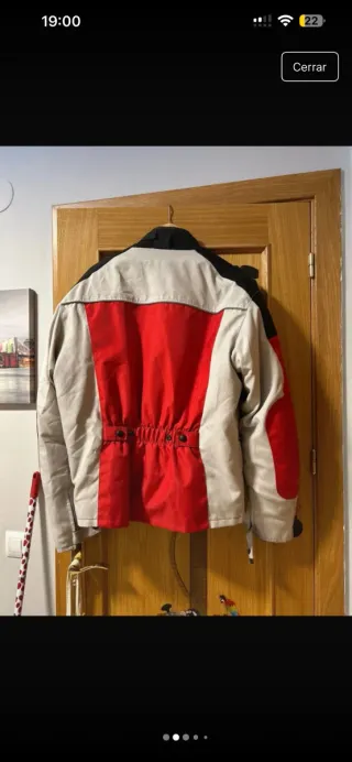 Chaqueta de moto Bikers, ideal para amantes de las motos clásicas. Es una prenda usada, con señales de uso visibles en las fotos. Ha hecho el Paris-Dakar (se adjunta fotografia). Necesita un lavado. - Color rojo y gris. - Diseño vintage. - Bolsillos funcionales.
