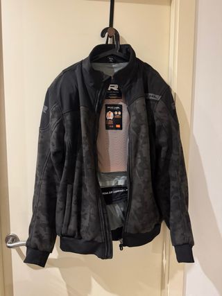 Chaqueta de moto Richa con un diseño de camuflaje en tonos oscuros. Ideal para protegerte en tus rutas. - Cierre de cremallera frontal. - Cuello alto. - Puños y cintura elásticos.