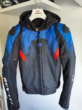 Chaqueta de moto Rev'it para verano. Talla M Está usada pero en muy buenas condiciones Tíene dos bolsillos exteriores y uno interior. Protección en codos y hombros. Se vende con la espaldera de la misma marca, comprada aparte. No hago envío. Se recoge en Móstoles.