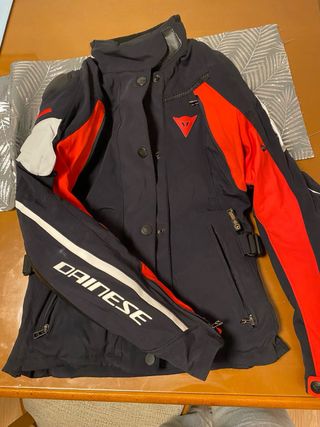 Chaqueta de moto Dainese Gore-Tex con doble forro y protecciones. Está en buen estado y es ideal para cualquier época del año. talla 44. talla S, pequeña. vale para mujer precio original 600e - Marca: Dainese - Modelo: Gore-Tex - Doble forro - Color: Negro, gris y rojo