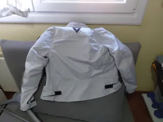 Chaqueta de moto Revit para mujer, talla 40, en color blanco. Es una prenda sin estrenar. - Diseño moderno y funcional. - Cierre frontal con cremallera. - Bolsillos exteriores con cremallera. -Protecciones en espalda, hombros y codos