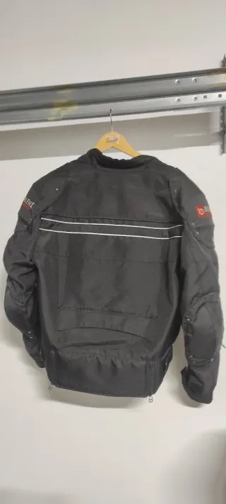 Chaqueta muy versátil y funcional confeccionada en poliéster 600D de alta resistencia. Dispone de membrana impermeable ArmDry, forro térmico extraíble y de entradas de aire con cremallera para adaptar-se según las adversidades del tiempo. Incorpora protecciones en hombros y codos con certificación CE. Se entrega con percha original. Está nueva, sin uso.