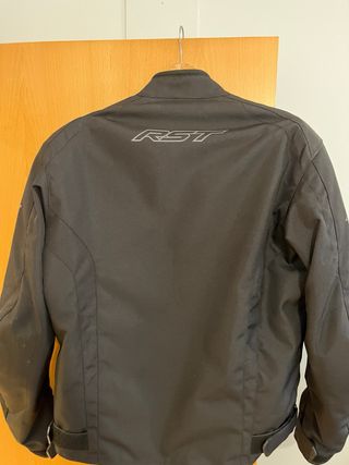Chaqueta de moto RST. Talla M. - Color negro. - Cierre de cremallera frontal. - Cuello alto con cierre. - Logos de la marca RST en la parte delantera y mangas. - Apenas usada 3 salidas, conservo incluso la etiqueta. Multiestacion con forro desmontable. Protecciones L2 hombros y codos y opcion de espaldera.