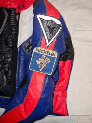 Chaqueta de cuero Dainese estilo retro vintage, talla T48. Diseño icónico con paneles de colores. Palabras gancho: chaqueta, dainese , retro , vintaje , talla , talla 48, cuero , mono , mono 2 piezas