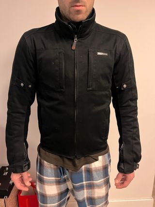 Vendo chaqueta de moto por no usar. Urbana y discreta, talla XL, protecciones en codos y hombros, puños ajustables, resistente al agua, cortaviento y transpirable