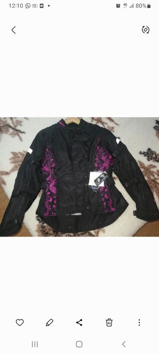 Chaqueta de moto talla 36 de cuero sintético comprada en el salón de la moto no estrenada con protecciones en hombros y en los codos, hay compartimento para poner tu propia espaldillera Tiene forro interno para los días de más frío para chicas queda entalladita muy bonita