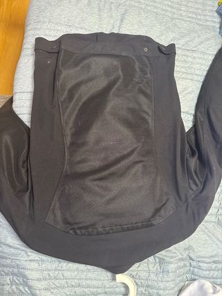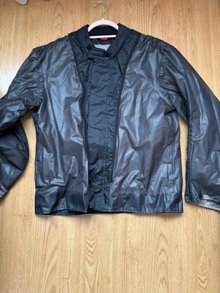 Chaque abrigo e impermeable con todas las protecciones correspondientes,se pueden quitar. Lleva forro para abrigar un plus.tambien aperturas con cremallera para ventilación. Se puede quitar el forro con cremallera . Está nuevo 2 veces se usó,por qué perdí bastante peso.