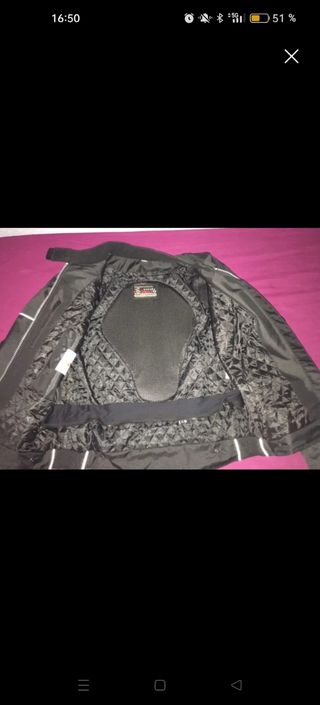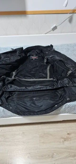 Chaqueta en perfecto estado con dos puestas . Forro de invierno , coderas y hombreras instaladas . Hueco para protección de la espalda. La talla es la l pero me queda algo justa .