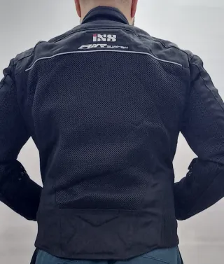 Chaqueta de moto de la marca Ixs. - Talla XXL - Color negro. - Cuello alto. - Cierre de cremallera.