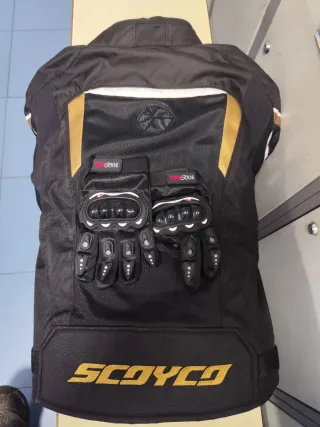 Casco chaqueta y guantes. El casco es talla s, aunque mejor probar. Por separado el casco 150€, la chaqueta 70€, y los guantes 30€. Todo junto 200€. Solo tiene un uso.