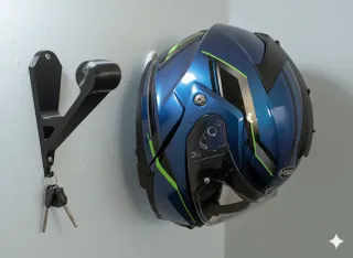 Soporte de pared para colgar cascos de moto o bicicleta. Incluye un pequeño gancho inferior para chaqueta o llaves. - Fabricado en plástico resistente PETG - Varias unidades disponibles - Color negro o blanco a elegir
