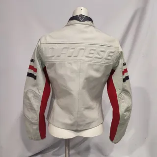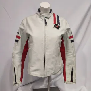 Chaqueta de piel Dainese para mujer. - Color blanco con detalles en rojo y azul. - Talla 42. Tags Suzuki Yamaha Kawasaki honda KTM BMW bimota Benelli bultaco montesa mv agusta Ducati cfmoto voge zontes kove qjmotor Dainese alpinestars sidi difi spidi mtech rukka klim shoei arai Agv Scorpion hjc LS2 moto scooter choper boober custom garibaldi kiwi Vasari