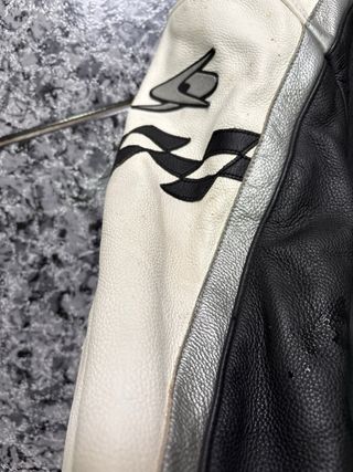 Chaqueta de moto Spyke en color negro y blanco, talla 50. Diseño deportivo y moderno. - Material: Piel. - Cierre de cremallera frontal. - Cuello alto con cierre de botón. - Puños ajustables con cremallera. - Bolsillos exteriores con cremallera.