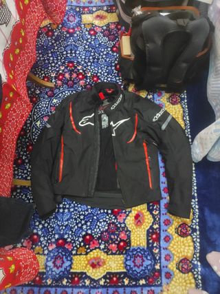 Chaqueta de moto Alpinestars en color negro y detalles en amarillo flúor con un diseño deportivo y moderno.Es impermeable, Talla S Apenas usada 3-4 veces. Viene con forro interior extraible para quitar y poder usar en verano. También cuenta con Espaldera que fue comprada aparte( ya que de fábrica viene sin la protección de espalda) - Diseño deportivo y moderno. - Impermeable. - Marca: Alpinestars